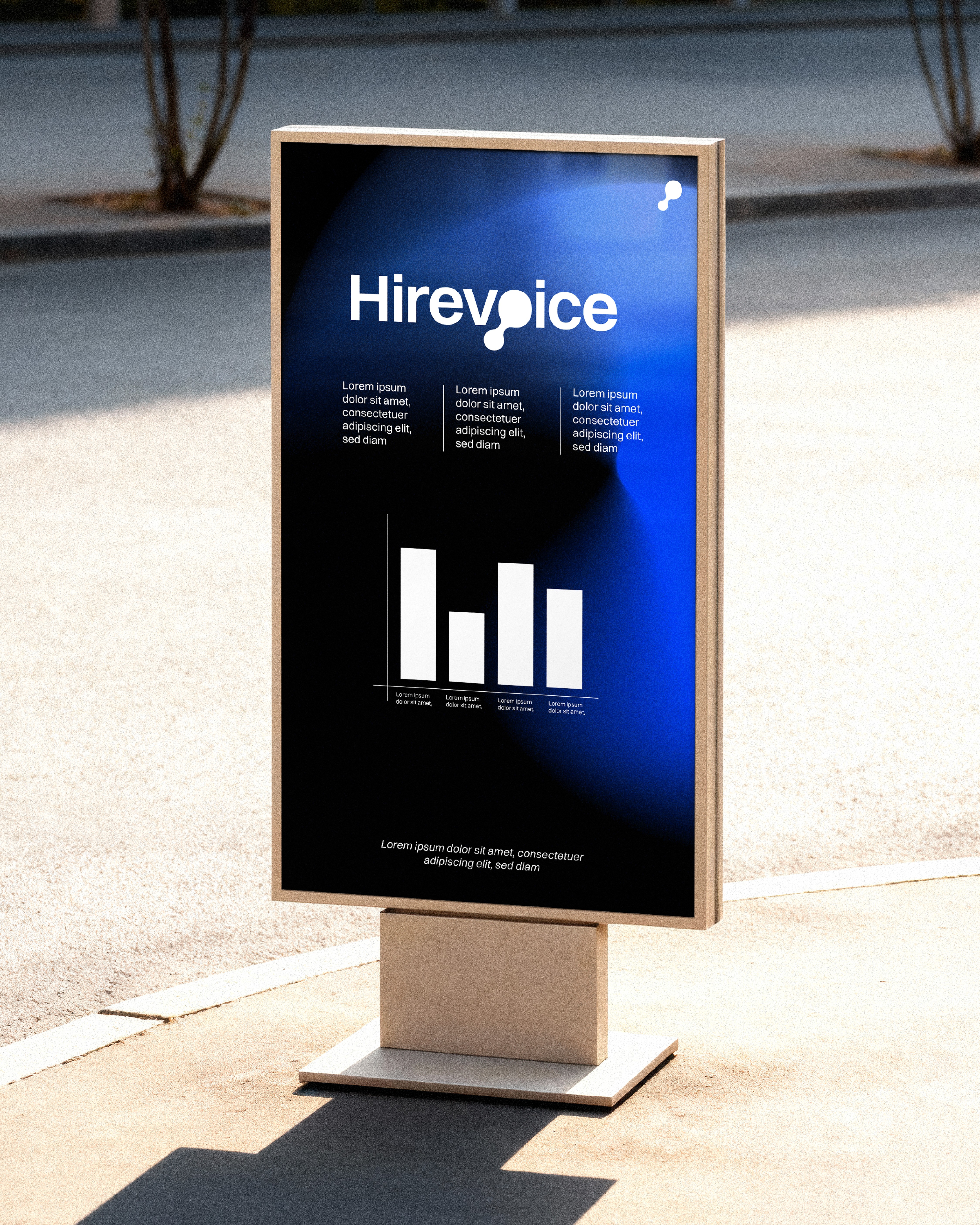 Diseño de identidad corporativa para Hirevoice, una plataforma especializada en entrevistas de voz automatizadas, que integra y optimiza el proceso de selección mediante tecnología conectada a sistemas de recursos humanos. A través de su identidad visual, el proyecto busca reflejar los valores de innovación, eficiencia y tecnología que caracterizan a Hirevoice, transmitiendo confianza y modernidad en un entorno digital orientado a los procesos de selección y evaluación de candidatos.
